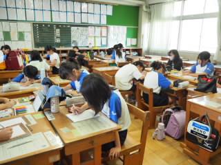 手芸クラブ、折り紙クラブ、イラストクラブの教室に行くと、黙々と作品づくりに取り組んでいます。教室はとても静かでした。