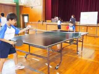運動系のクラブもあります。体育館ではバスケットボールクラブと卓球クラブが活動していました。一対一の対戦を思い切り楽しんでいました。