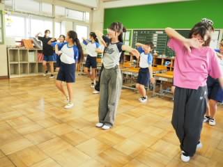 ダンスクラブの教室に行くと、先生の振り付けをまねしながら練習しています。動きがそろっていました。踊っている様子もとても楽しそうです。