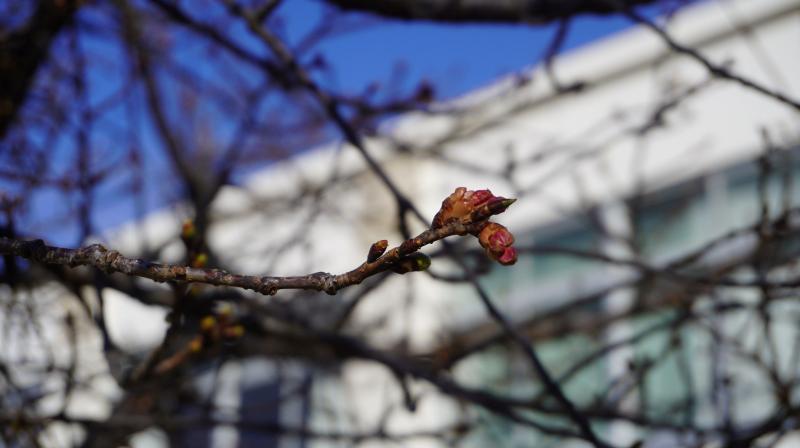 寒い日が続いていますが、河津桜のつぼみを見つけました。