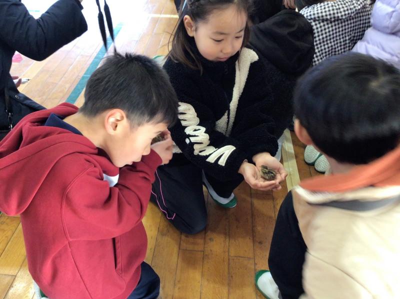のんほいパークから飼育員さんをお招きして絶滅危惧種のことを教えてもらった6年生。