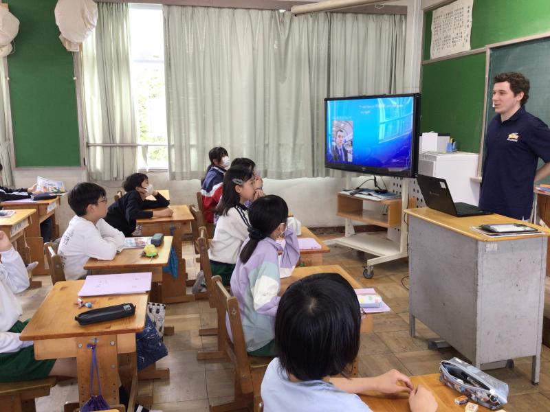 そして、今度は世界旅行に行くならこの国へ、こんなことがしたいなという考えをもとに、おすすめの国について。問いかけを入れて、聞き手に関心をもってもらうような話し方を学び、福岡小学校の先生方にも「こんなことができる国なんですよ」と伝えてみました。いよいよ、アメリカへのビデオレター第二弾です。