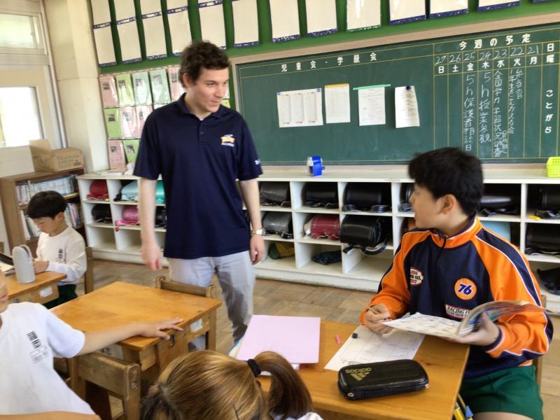 休み時間には運動場で子どもたちと元気に遊んでくれたみなさん。ありがとうございました。