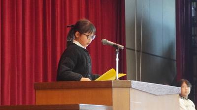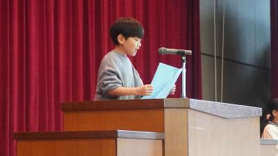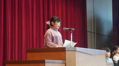 4名の代表の子が「2学期にがんばったこと」、「3学期にがんばりたいこと」を発表しました。