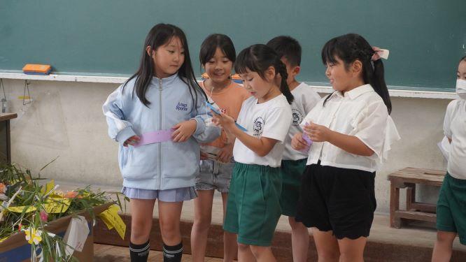 入村式では、以前福岡小学校にお勤めの鈴川先生から、「くろしお村」の村長としてお話をいただきました。