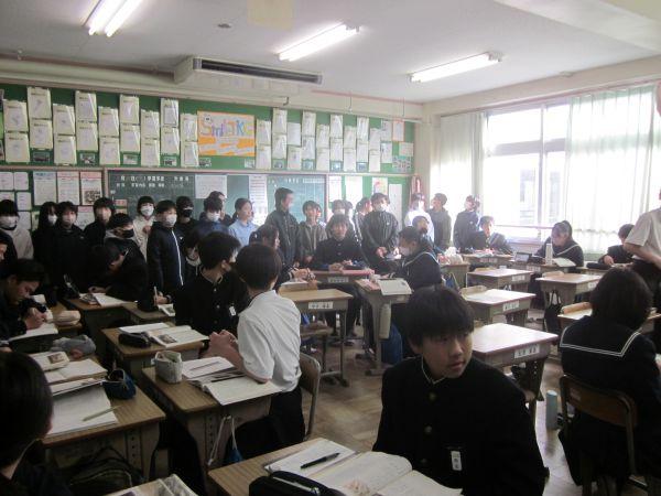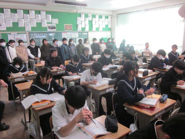 令和8年が始りました。今年もよろしくお願いします。オンライン始業式での代表生徒の決意では、努力したいを力強く話してくれました。その後の学級学年活動では、学年集会だったり、宿題を集めたり、今年の目標を考えたりしました。また、2年生は百人一首大会を開催しました。始業式で校長から「お正月は古くから伝わる日本の伝統を経験できる」という話もありました。まさにその姿でした。