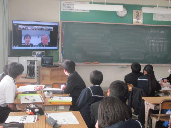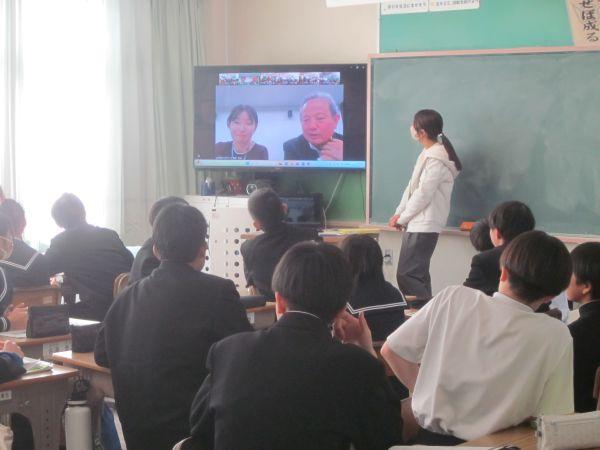2年生が東京の企業とオンライン交流を行いました。これは来年度の修学旅行中で東京都墨田区を訪問する計画があるからです。墨田区は下町らしく地域のコミュニケーションが積極的に図られているようです。そこで、生徒らは墨田区の「ものづくり」「子どもの遊び場」「企業や団体のSDGsへのの取り組み」などについて調べ、そのことについて実際の墨田区の企業のかたに質問したり、感じたことを発表したりしました。とても貴重な体験となりました。