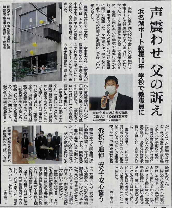 悲劇を繰り返さない 投稿日時 : 2020/07/04 主担 カテゴリ:今日の出来事 (令和2年7月4日 東愛知新聞より) 2年前、豊橋市の中学生が自転車に乗っており、大型トラックにはねられるという痛ましい事故が起きました。今年、愛知県では死亡事故が増加し、全国でワースト1位となっています。ヘルメットの着用や自転車の運転など十分に注意しましょう。 {{options.likeCount}} {{options.likeCount}}