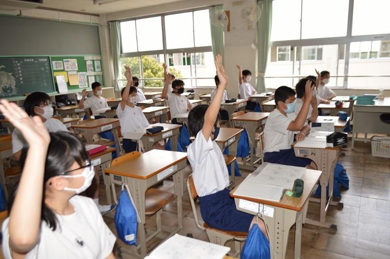 生徒総会 投稿日時 : 2020/06/08 主担 カテゴリ:今日の出来事 1時間目、毎年体育館で一斉に集まって行う生徒総会を各学級で行いました。生徒会役員の善行放送の後、各学級で級長を中心に生徒会スローガンについての話し合いをしました。 {{options.likeCount}} {{options.likeCount}}