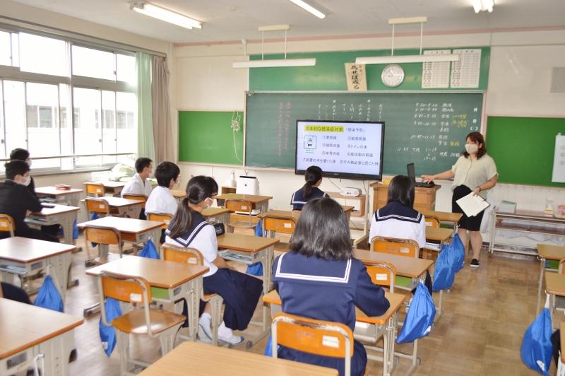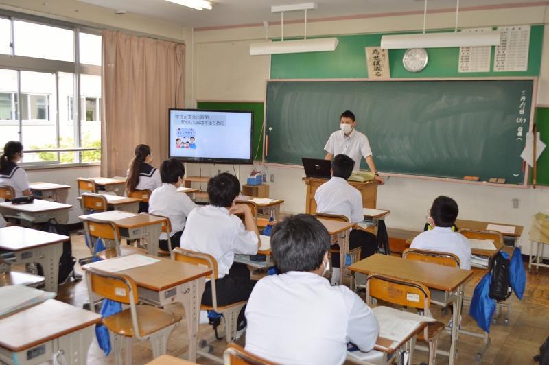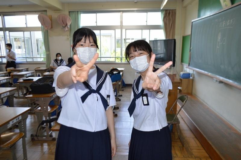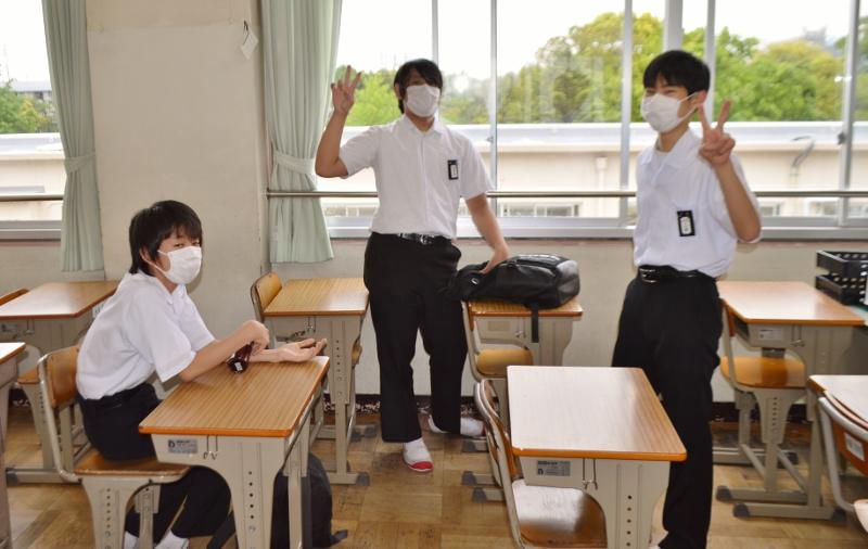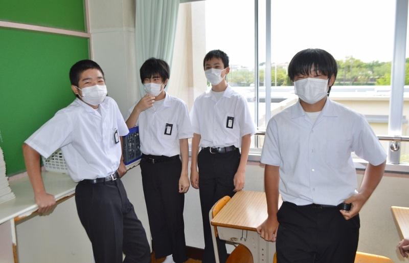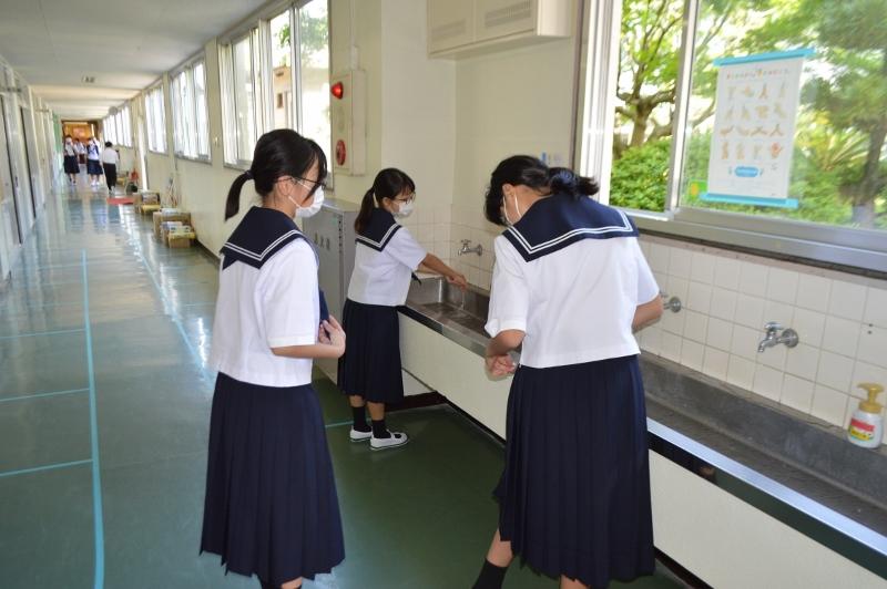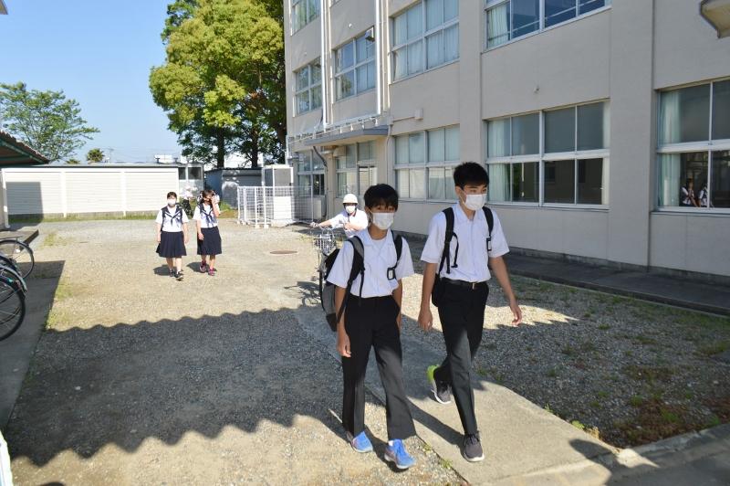 午前Aグループ分散登校 投稿日時 : 2020/05/27 主担 カテゴリ:今日の出来事 今日は午前中、Aグループ分散登校の日です。検温チェックをして、手洗いをして教室に入ります。笑顔で友達と話す姿を見かけます。生徒会役員の生徒たちは、朝の短い時間に集まって、生徒会スローガンなどについて話し合ってくれています。2年生の教室では、担任の先生が教室にいなくても、静かに読書や課題を進めている姿がありました。 {{options.likeCount}} {{options.likeCount}}