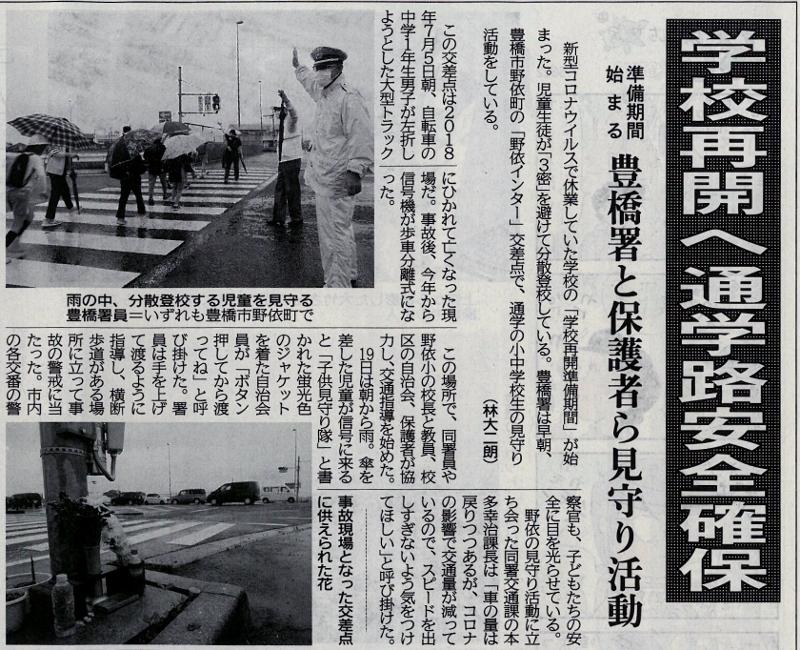 熱中症に注意しましょう 投稿日時 : 2020/05/27 主担 カテゴリ:今日の出来事 (令和2年5月26日 中日新聞より) 今日も一日暑くなりました。学校では、生徒玄関のミストシャワー、教室での扇風機の使用、帽子着用、体操服登校の許可、水筒持参の呼びかけなどを行っています。最近は、少し動いたり、会話をしたりするだけで息苦しさを感じます。まだ初夏ですが、これからの季節は熱中症が心配です。特に、2歳未満のマスクは危険との日本小児科医会の報告が出ています。暑い時や運動時などには、熱中症にならないために、マスク着用を無理しないようにしましょう。日本小児科医会HPhttps://www.jpa-web.org/information/ippan_coronavirus.html {{options.likeCount}} {{options.likeCount}}