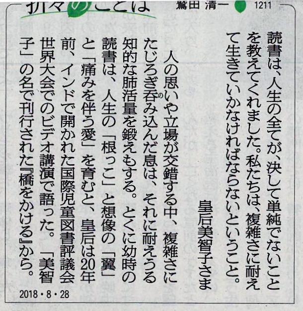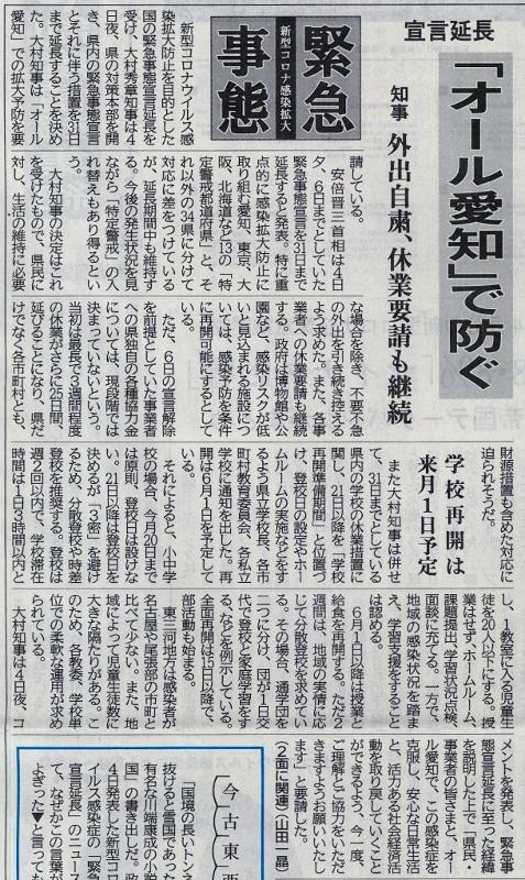 戦争を体験された方にとっては、今の社会に不穏な空気を感じてしまうのでしょうか。「自粛」は本来、「自分で自分の行いを慎むこと」とあるのですが、人に強制することのように捉えられてしまっています。都道府県知事の会議で「気が緩んでいる」という言葉が多く聞かれ、私達の努力も肯定されず、とても残念に思いました。延々と繰り返される「自粛」生活と、布マスクや給付金がなかなか届かないことに、気を揉み、気を落とし、気が抜け、気が滅入り、気を奪われ、気が重くなり、気が休まらず、気を病み、気が塞ぎ、気に障り、気が立ってしまっている方もいらっしゃるのではないでしょうか。どうか、気に食わないことや気に障ることがあっても、気に留めず、気を奪われないようにして、毎日を元気よく過ごしましょう。(ちなみに、「気」について使われている感じは全て読めましたか?たくさんありますね。)