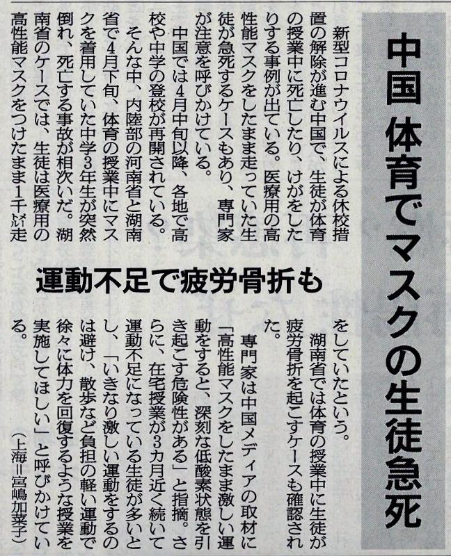 今日もとてもよい天気です。太陽や新緑がまぶしく感じられ、気温もぐんぐん上昇しています。小中学生のみなさんは、頭も体も心もぐんぐんと成長する新緑のような時期です。テレビを見ても「STAY HOME」しか言っていないので、まじめに家にこもっている人が多いと思われます。部屋にじっとこもっていると運動する機会が少なくなってしまいます。毎日少しでも体を動かして、頭と心を開放することが大切です。マスクをしても外へ行くのが不安な人は家の中でもできることをやってみましょう。