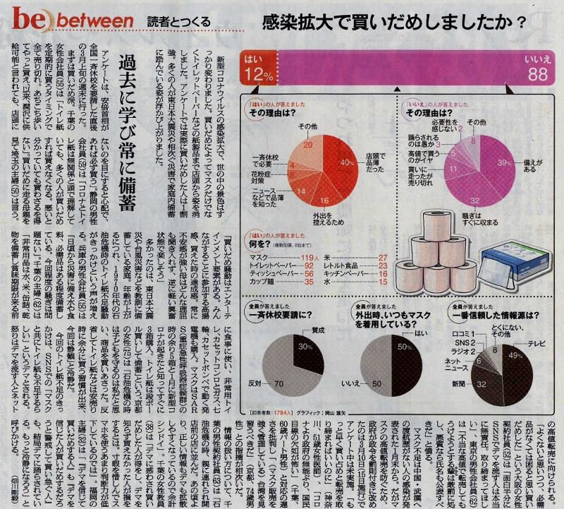 今、新型コロナウイルスによって、私達は悲鳴を上げています。しかし、つい最近までは、地球が悲鳴を上げていました。世界が車や飛行機などの乗り物で溢れ、工場などで化石燃料が大量に使用され、光化学スモッグやPM2.5が空を覆い尽くしていました。二酸化炭素の排出量の規制も進まず、地球温暖化の影響もあり年々地球が熱くなっています。海には、私達が使用したビニールやプラスチック、廃棄物が流れ着き、マイクロプラスチックとなり海を覆い尽くしていました。日本でもようやく規制が進みつつあります。南米での森林伐採、オーストラリアでの半年以上に及ぶ森林火災によって動物の住処が減ると同時に、10億以上の命が亡くなりました。動物が、地球上で安心して暮らせる場所が少なくなっています。絶滅を危惧される動物は約2万種類います。ニホンオオカミやドードーなど人が絶滅させた動物もたくさんいます。街に動物が溢れ、水が澄み、青空が見られる状況を見ると、私達の学び方、働き方、大量消費、移動や経済活動、日々の暮らしなど、今こそ振り返るチャンスだと思います。