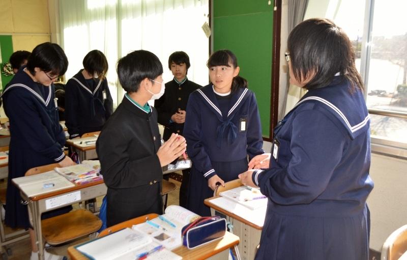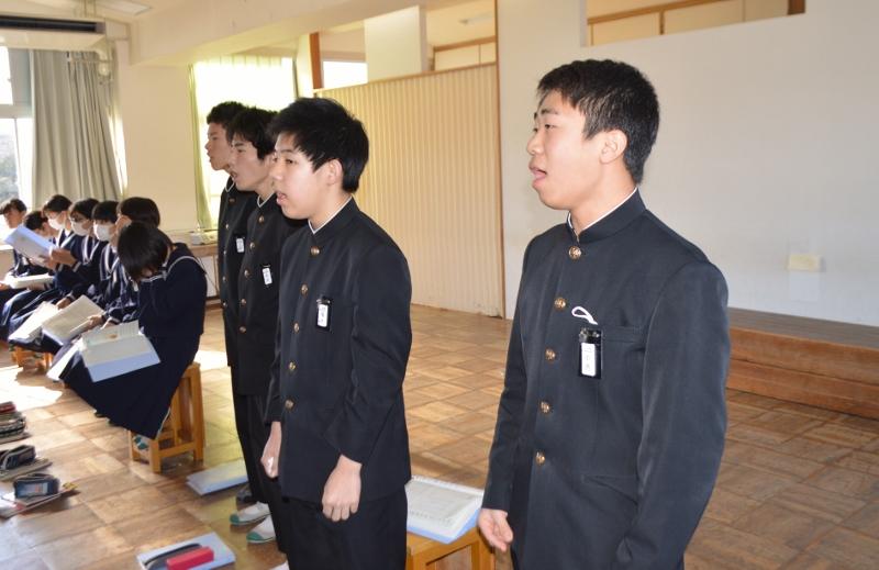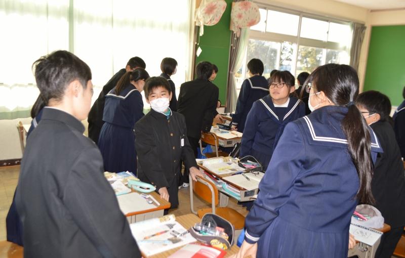 日々の様子 全ての記事 全ての記事 カテゴリ 今日の出来事 連絡事項 報告事項 ミーティング 本・雑誌 ニュース 映画・テレビ 音楽 スポーツ パソコン・インターネット ペット 総合学習 アニメ・コミック アーカイブ 2025年12月 (3) 2025年11月 (2) 2025年10月 (18) 2025年9月 (4) 2025年8月 (2) 2025年7月 (1) 2025年6月 (5) 2025年5月 (17) 2025年4月 (8) 2025年3月 (6) 2025年2月 (3) 2025年1月 (7) 2024年12月 (4) 2024年11月 (5) 2024年10月 (16) 2024年9月 (14) 2024年8月 (3) 2024年7月 (5) 2024年6月 (6) 2024年5月 (16) 2024年4月 (8) 2024年3月 (9) 2024年2月 (7) 2024年1月 (8) 2023年12月 (8) 2023年11月 (9) 2023年10月 (21) 2023年9月 (18) 2023年8月 (3) 2023年7月 (14) 2023年6月 (16) 2023年5月 (26) 2023年4月 (13) 2023年3月 (0) 2023年2月 (0) 2023年1月 (0) 2022年12月 (0) 2022年11月 (0) 2022年10月 (0) 2022年9月 (0) 2022年8月 (0) 2022年7月 (0) 2022年6月 (0) 2022年5月 (0) 2022年4月 (0) 2022年3月 (0) 2022年2月 (0) 2022年1月 (0) 2021年12月 (0) 2021年11月 (0) 2021年10月 (0) 2021年9月 (1) 2021年8月 (0) 2021年7月 (1) 2021年6月 (30) 2021年5月 (5) 2021年4月 (6) 2021年3月 (100) 2021年2月 (108) 2021年1月 (105) 2020年12月 (106) 2020年11月 (120) 2020年10月 (82) 2020年9月 (97) 2020年8月 (91) 2020年7月 (110) 2020年6月 (95) 2020年5月 (151) 2020年4月 (119) 2020年3月 (100) 2020年2月 (53) 2020年1月 (48) 2019年12月 (65) 2019年11月 (73) 2019年10月 (50) 2019年9月 (19) 2019年8月 (4) 2019年7月 (7) 2019年6月 (15) 2019年5月 (15) 2019年4月 (12) 2019年3月 (13) 2019年2月 (17) 2019年1月 (10) 2018年12月 (16) 2018年11月 (27) 2018年10月 (22) 2018年9月 (29) 2018年8月 (4) 2018年7月 (6) 2018年6月 (8) 2018年5月 (13) 2018年4月 (11) 2018年3月 (0) 2018年2月 (1) 2018年1月 (0) 2017年12月 (0) 2017年11月 (0) 2017年10月 (3) 10件 1件 5件 10件 20件 50件 100件 学年末テスト最終日 投稿日時 : 2020/02/14 主担 カテゴリ:今日の出来事 学年末テスト最終日となりました。2年生は国語、保体、数学に、1年生は保体、英語、理科に取り組みます。最後までがんばってください。4時間目からは授業となります。テストがもう返却される今日かもあるかもしれません。土日は、ゆっくり休憩しながらも、テストの振り返りをしたいですね。 {{options.likeCount}} {{options.likeCount}} 奉仕作業 投稿日時 : 2020/02/13 主担 カテゴリ:今日の出来事 3年生の生徒たちが、3年間学んだ教室のワックスがけ、柔道場の掃除、廊下の幅木の塗装、自転車置き場のペンキ塗り、机の天板の取り換えなどを行いました。卒業式までの登校日もあと11日となりました。残りの学校生活を充実させ、後輩の見本となり、立派な姿で卒業式を迎えましょう。 {{options.likeCount}} {{options.likeCount}} 謝恩会 投稿日時 : 2020/02/13 主担 カテゴリ:今日の出来事 午後、3年級長会主催で謝恩会を行っていただきました。代表生徒からのメッセージと、「仰げば尊し」を送ってもらいました。ありがとうございました。 {{options.likeCount}} {{options.likeCount}} 学年末テスト2日目! 投稿日時 : 2020/02/13 主担 カテゴリ:今日の出来事 学年末テスト2日目を迎えました。2年生は、技家、英語、美術に取り組みます。1年生は、美術、社会、音楽に取り組みます。1年生の美術では、絵を描く問題もあり、必死に取り組んでいました。午後は家庭学習となります。最終日の3日目に向けてがんばりましょう。 {{options.likeCount}} {{options.likeCount}} 学年末テストが始まりました! 投稿日時 : 2020/02/12 主担 カテゴリ:今日の出来事 今日から、1・2年生の学年末テストが始まりました。1年生は、国語・技家・数学の3教科、2年生は、社会、音楽、理科の3教科に取り組んでいます。午後からは、家庭学習となりますので、あと2日間がんばりましょう。 {{options.likeCount}} {{options.likeCount}} 体育の授業では 投稿日時 : 2020/02/10 主担 カテゴリ:今日の出来事 2年生女子の体育の授業では、剣道を行っています。礼をして蹲踞、「始め!」の合図で始めましたが、おしとやかな生徒が多く、なかなか相手に打ち込めません。竹刀をコツコツとぶつけあって終わりました。 {{options.likeCount}} {{options.likeCount}} 朝のあいさつ 投稿日時 : 2020/02/10 主担 カテゴリ:今日の出来事 朝の気温は0度。今年一番の冷え込みとなっています。晴れているので、陽ざしの当たるところは温かいです。登校指導日ということで、あいさつを兼ねて生徒たちの登校の様子を見守りました。自転車通学生は、正門前の道を、きれいな一列になって自転車を引いて歩いています。徒歩通学の生徒で、元気な声であいさつを返してくれる生徒もいます。体育館北に咲く水仙の花も、温かく見守っています。 {{options.likeCount}} {{options.likeCount}} 青空 投稿日時 : 2020/02/08 主担 カテゴリ:今日の出来事 朝の9時過ぎ。爽やかな青空。広い運動場。生徒の人影も、動物の動きさえも全くありません。いつもは部活動の生徒が、元気に走り回ったり、ボールを追いかけたりと、活気があり賑やかな運動場ですが、テスト週間の運動場は寂しい限りです。「早く帰って来~い!」と、運動場の呼び声が聞こえてくるようです。 {{options.likeCount}} {{options.likeCount}} 放課ではありますが・・・ 投稿日時 : 202