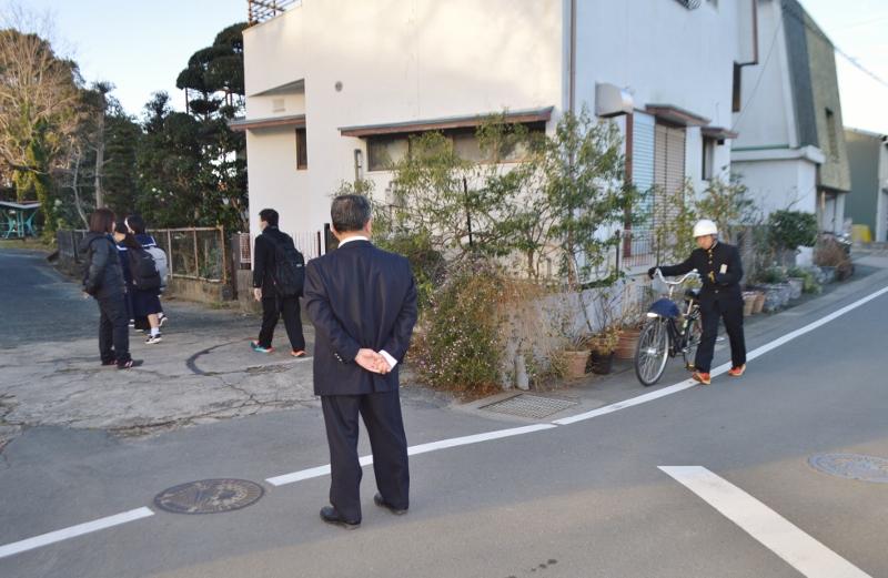 朝のあいさつ 投稿日時 : 2020/02/10 主担 カテゴリ:今日の出来事 朝の気温は0度。今年一番の冷え込みとなっています。晴れているので、陽ざしの当たるところは温かいです。登校指導日ということで、あいさつを兼ねて生徒たちの登校の様子を見守りました。自転車通学生は、正門前の道を、きれいな一列になって自転車を引いて歩いています。徒歩通学の生徒で、元気な声であいさつを返してくれる生徒もいます。体育館北に咲く水仙の花も、温かく見守っています。 {{options.likeCount}} {{options.likeCount}}