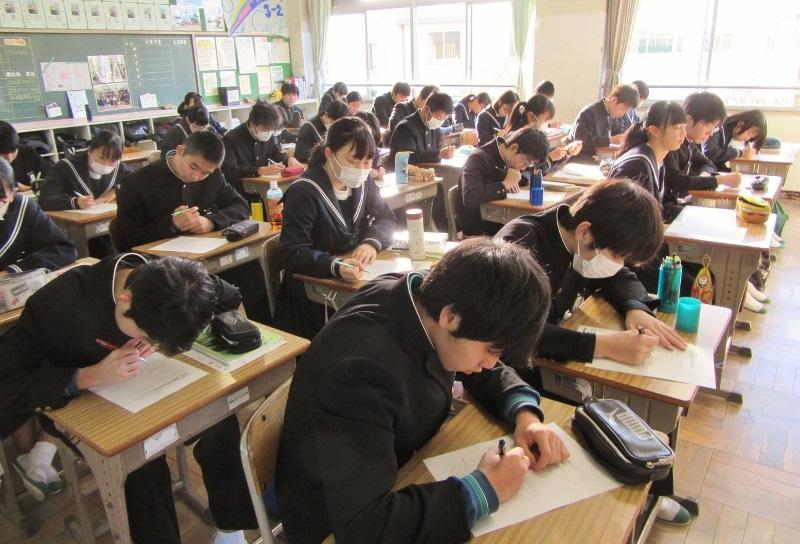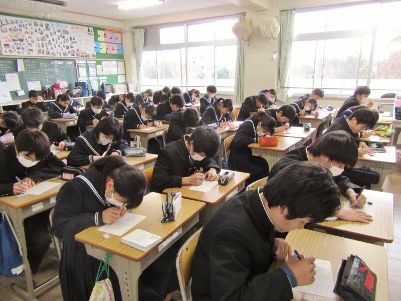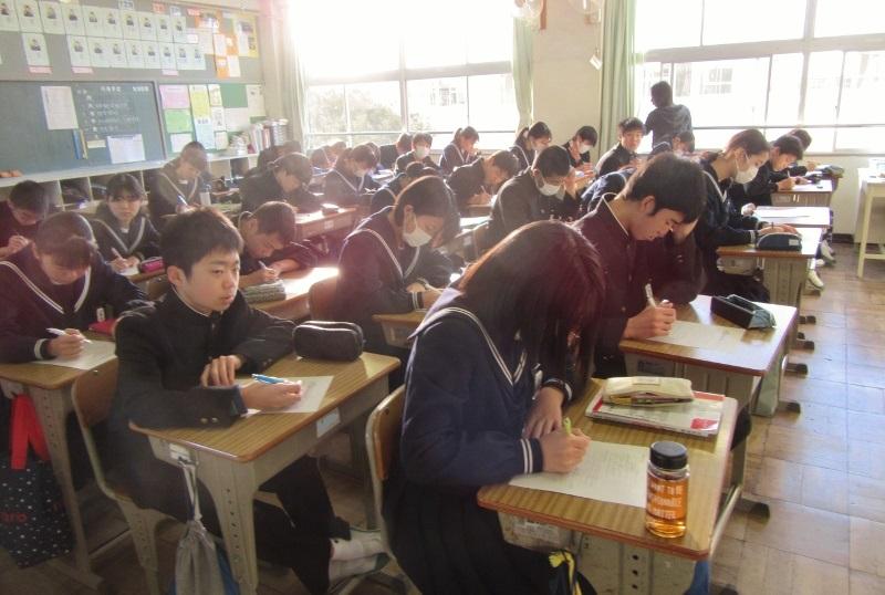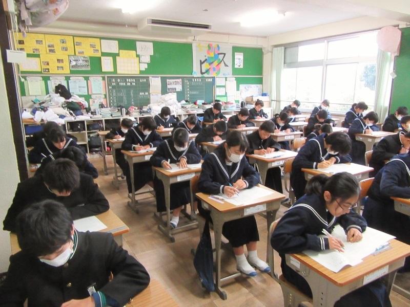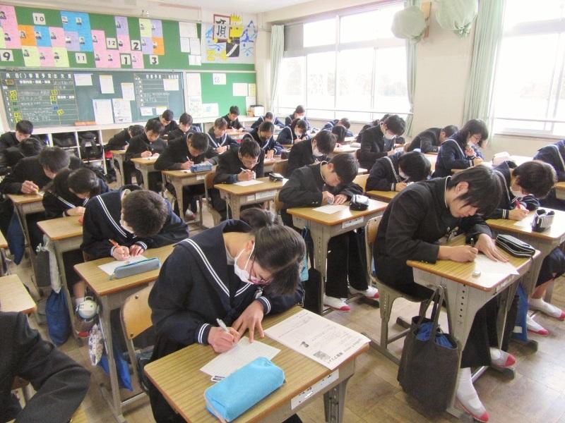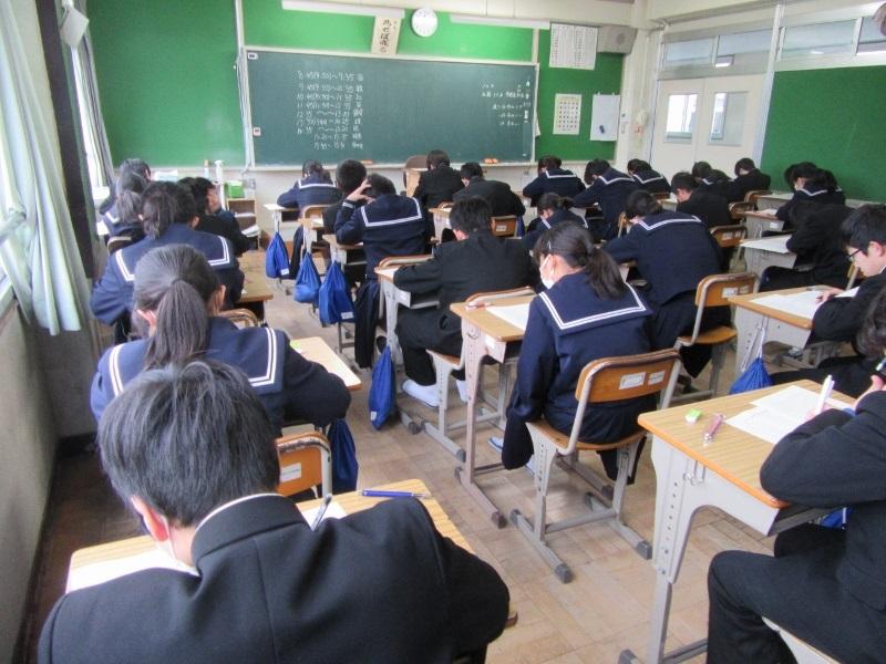 学年末テストが始まりました! 投稿日時 : 2020/02/12 主担 カテゴリ:今日の出来事 今日から、1・2年生の学年末テストが始まりました。1年生は、国語・技家・数学の3教科、2年生は、社会、音楽、理科の3教科に取り組んでいます。午後からは、家庭学習となりますので、あと2日間がんばりましょう。 {{options.likeCount}} {{options.likeCount}}