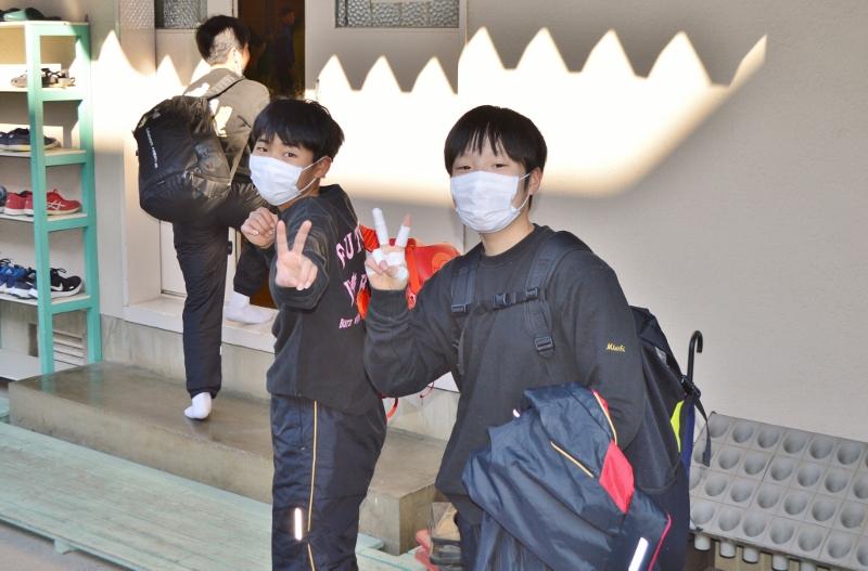 日々の様子 全ての記事 全ての記事 カテゴリ 今日の出来事 連絡事項 報告事項 ミーティング 本・雑誌 ニュース 映画・テレビ 音楽 スポーツ パソコン・インターネット ペット 総合学習 アニメ・コミック アーカイブ 2025年12月 (3) 2025年11月 (2) 2025年10月 (18) 2025年9月 (4) 2025年8月 (2) 2025年7月 (1) 2025年6月 (5) 2025年5月 (17) 2025年4月 (8) 2025年3月 (6) 2025年2月 (3) 2025年1月 (7) 2024年12月 (4) 2024年11月 (5) 2024年10月 (16) 2024年9月 (14) 2024年8月 (3) 2024年7月 (5) 2024年6月 (6) 2024年5月 (16) 2024年4月 (8) 2024年3月 (9) 2024年2月 (7) 2024年1月 (8) 2023年12月 (8) 2023年11月 (9) 2023年10月 (21) 2023年9月 (18) 2023年8月 (3) 2023年7月 (14) 2023年6月 (16) 2023年5月 (26) 2023年4月 (13) 2023年3月 (0) 2023年2月 (0) 2023年1月 (0) 2022年12月 (0) 2022年11月 (0) 2022年10月 (0) 2022年9月 (0) 2022年8月 (0) 2022年7月 (0) 2022年6月 (0) 2022年5月 (0) 2022年4月 (0) 2022年3月 (0) 2022年2月 (0) 2022年1月 (0) 2021年12月 (0) 2021年11月 (0) 2021年10月 (0) 2021年9月 (1) 2021年8月 (0) 2021年7月 (1) 2021年6月 (30) 2021年5月 (5) 2021年4月 (6) 2021年3月 (100) 2021年2月 (108) 2021年1月 (105) 2020年12月 (106) 2020年11月 (120) 2020年10月 (82) 2020年9月 (97) 2020年8月 (91) 2020年7月 (110) 2020年6月 (95) 2020年5月 (151) 2020年4月 (119) 2020年3月 (100) 2020年2月 (53) 2020年1月 (48) 2019年12月 (65) 2019年11月 (73) 2019年10月 (50) 2019年9月 (19) 2019年8月 (4) 2019年7月 (7) 2019年6月 (15) 2019年5月 (15) 2019年4月 (12) 2019年3月 (13) 2019年2月 (17) 2019年1月 (10) 2018年12月 (16) 2018年11月 (27) 2018年10月 (22) 2018年9月 (29) 2018年8月 (4) 2018年7月 (6) 2018年6月 (8) 2018年5月 (13) 2018年4月 (11) 2018年3月 (0) 2018年2月 (1) 2018年1月 (0) 2017年12月 (0) 2017年11月 (0) 2017年10月 (3) 10件 1件 5件 10件 20件 50件 100件 朝の時間は 投稿日時 : 2020/02/07 主担 カテゴリ:今日の出来事 テスト週間が5日から始まりました。普段の朝の読書の時間は、テスト対策プリントを行っています。2年生の様子ですが、みんな朝から真剣です。 {{options.likeCount}} {{options.likeCount}} 玄関横には 投稿日時 : 2020/02/07 主担 カテゴリ:今日の出来事 朝の気温は1度。立春が過ぎましたが、段々と寒さが厳しくなってきたように思います。しかし、二川中学校の玄関横には、白梅がきれいに咲いてます。近づくとよい香りが漂ってきます。 {{options.likeCount}} {{options.likeCount}} 新入生説明会 投稿日時 : 2020/02/06 主担 カテゴリ:今日の出来事 14時5分から、新入生説明会を行いました。校長挨拶、生徒会役員からの学校紹介、学習、生活、自転車使用についての説明を行いました。来年度から、採用されるポロシャツや、女子のスラックスなどのお披露目も行いました。冷え込み厳しい日となりましたが、元気に来校し、礼儀正しく説明を聞いている姿に、来年度の期待が高まりました。小学校の卒業式まで、給食をもりもり食べ、小学校の勉強もしっかりとやって、入学してきてください。楽しみに待ってます。 {{options.likeCount}} {{options.likeCount}} 準備万端 投稿日時 : 2020/02/06 主担 カテゴリ:今日の出来事 3・4時間目、2年生の生徒たちが、午後から行われる新入生説明会の準備をしてくれました。準備万端にできましたので、元気にみんな二川中学校に来ることを願っています。 {{options.likeCount}} {{options.likeCount}} 家庭科の授業で 投稿日時 : 2020/02/06 主担 カテゴリ:今日の出来事 1年生の家庭科の授業で、防災枕作りをしていました。先生にミシンの使い方などを教えてもらっていました。 {{options.likeCount}} {{options.likeCount}} 思いを込めて 投稿日時 : 2020/02/06 主担 カテゴリ:今日の出来事 3年生は公立高校の願書書きを始めました。私立高校の一般入試を終えて、合格発表を待つ不安な気持ちもあることでしょう。担任の先生の指導の下、思いを込めて、一字一字丁寧に書き込んでいました。 {{options.likeCount}} {{options.likeCount}} テスト面談週間 投稿日時 : 2020/02/05 主担 カテゴリ:今日の出来事 本日から、1・2年生が学年末テストのテスト週間になりました。帰りの会後には、担任の先生との面談週間も始まりました。1年間の学校生活を振り返ったり、進級に向けての目標を確認したりしています。面談終了後には、自主学習会も行います。最後のテストに向けて頑張りましょう。 {{options.likeCount}} {{options.likeCount}} 英語の授業で 投稿日時 : 2020/02/05 主担 カテゴリ:今日の出来事 1年生の英語の授業では、ALTの先生が「JEOPARDY」というクイズを行っています。1年間で習った単語や英文などをクイズ形式で問題を出し、チームごとに協力して答えています。難しくなかなか答えが出せず、苦戦している問題もあります。 {{options.likeCount}} {{options.likeCount}} 美術の授業で 投稿日時 : 2020/02/05 主担 カテゴリ:今日の出来事 1年生の美術の授業では、木版画を行っています。自分の好きな植物を題材に取り組んでいます。 {{options.likeCount}} {{options.likeCount}} 家庭科の授業 投稿日時 : 2020/02/05 主担 カテゴリ:今日の出来事 1年生の家庭科の授業では、防災枕を作っています。ミシンやアイロンを使ったり、先生に聞いたりしながら進めています。 {{options.likeCount}}