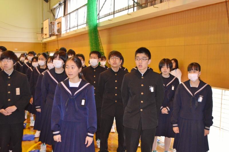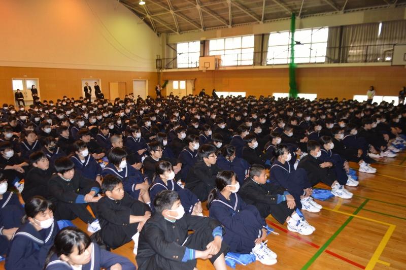 新入生説明会 投稿日時 : 2020/02/06 主担 カテゴリ:今日の出来事 14時5分から、新入生説明会を行いました。校長挨拶、生徒会役員からの学校紹介、学習、生活、自転車使用についての説明を行いました。来年度から、採用されるポロシャツや、女子のスラックスなどのお披露目も行いました。冷え込み厳しい日となりましたが、元気に来校し、礼儀正しく説明を聞いている姿に、来年度の期待が高まりました。小学校の卒業式まで、給食をもりもり食べ、小学校の勉強もしっかりとやって、入学してきてください。楽しみに待ってます。 {{options.likeCount}} {{options.likeCount}}