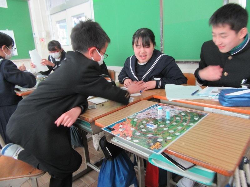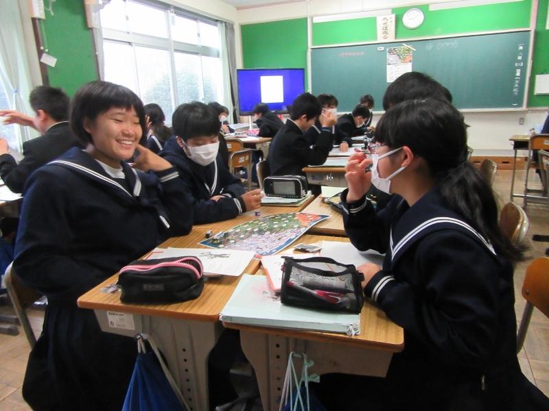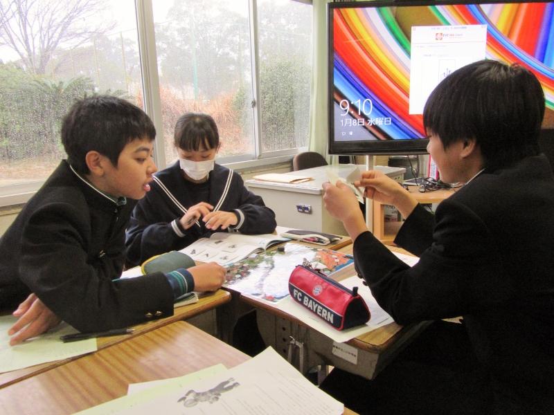 英語の授業で 投稿日時 : 2020/02/05 主担 カテゴリ:今日の出来事 1年生の英語の授業では、ALTの先生が「JEOPARDY」というクイズを行っています。1年間で習った単語や英文などをクイズ形式で問題を出し、チームごとに協力して答えています。難しくなかなか答えが出せず、苦戦している問題もあります。 {{options.likeCount}} {{options.likeCount}}