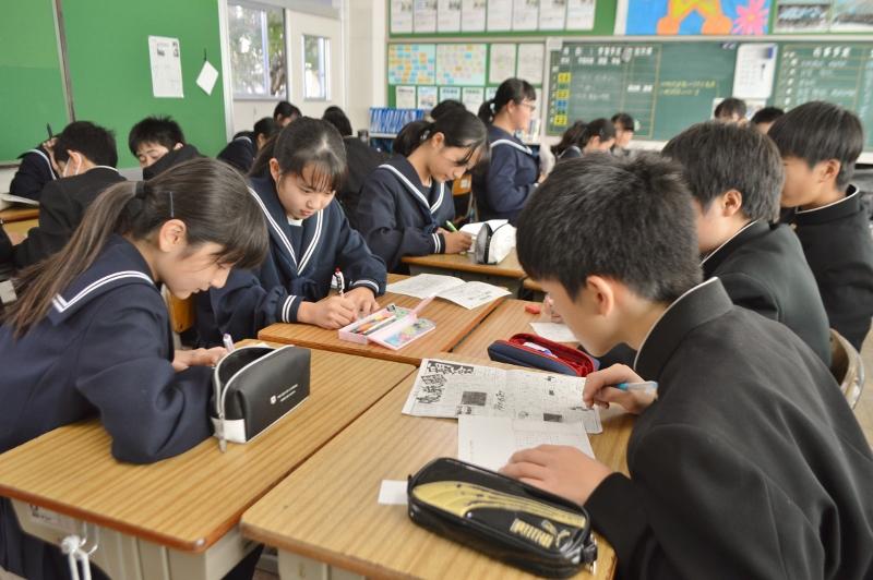 日々の様子 全ての記事 全ての記事 カテゴリ 今日の出来事 連絡事項 報告事項 ミーティング 本・雑誌 ニュース 映画・テレビ 音楽 スポーツ パソコン・インターネット ペット 総合学習 アニメ・コミック アーカイブ 2025年12月 (3) 2025年11月 (2) 2025年10月 (18) 2025年9月 (4) 2025年8月 (2) 2025年7月 (1) 2025年6月 (5) 2025年5月 (17) 2025年4月 (8) 2025年3月 (6) 2025年2月 (3) 2025年1月 (7) 2024年12月 (4) 2024年11月 (5) 2024年10月 (16) 2024年9月 (14) 2024年8月 (3) 2024年7月 (5) 2024年6月 (6) 2024年5月 (16) 2024年4月 (8) 2024年3月 (9) 2024年2月 (7) 2024年1月 (8) 2023年12月 (8) 2023年11月 (9) 2023年10月 (21) 2023年9月 (18) 2023年8月 (3) 2023年7月 (14) 2023年6月 (16) 2023年5月 (26) 2023年4月 (13) 2023年3月 (0) 2023年2月 (0) 2023年1月 (0) 2022年12月 (0) 2022年11月 (0) 2022年10月 (0) 2022年9月 (0) 2022年8月 (0) 2022年7月 (0) 2022年6月 (0) 2022年5月 (0) 2022年4月 (0) 2022年3月 (0) 2022年2月 (0) 2022年1月 (0) 2021年12月 (0) 2021年11月 (0) 2021年10月 (0) 2021年9月 (1) 2021年8月 (0) 2021年7月 (1) 2021年6月 (30) 2021年5月 (5) 2021年4月 (6) 2021年3月 (100) 2021年2月 (108) 2021年1月 (105) 2020年12月 (106) 2020年11月 (120) 2020年10月 (82) 2020年9月 (97) 2020年8月 (91) 2020年7月 (110) 2020年6月 (95) 2020年5月 (151) 2020年4月 (119) 2020年3月 (100) 2020年2月 (53) 2020年1月 (48) 2019年12月 (65) 2019年11月 (73) 2019年10月 (50) 2019年9月 (19) 2019年8月 (4) 2019年7月 (7) 2019年6月 (15) 2019年5月 (15) 2019年4月 (12) 2019年3月 (13) 2019年2月 (17) 2019年1月 (10) 2018年12月 (16) 2018年11月 (27) 2018年10月 (22) 2018年9月 (29) 2018年8月 (4) 2018年7月 (6) 2018年6月 (8) 2018年5月 (13) 2018年4月 (11) 2018年3月 (0) 2018年2月 (1) 2018年1月 (0) 2017年12月 (0) 2017年11月 (0) 2017年10月 (3) 10件 1件 5件 10件 20件 50件 100件 英語スペリングコンテスト 投稿日時 : 2019/12/13 主担 カテゴリ:今日の出来事 6時間目、3年生は、英語スペリングコンテストに取り組んでいました。放送を聞いて、英単語や英文を書き取ります。集中力を乱さないために、廊下からそっと写真を撮りました。 {{options.likeCount}} {{options.likeCount}} FS集会に向けて 投稿日時 : 2019/12/12 主担 カテゴリ:今日の出来事 6時間目、2年生は総合的な学習の時間を使って、明日のFS集会の発表練習を行いました。今年一年間取り組んできた「働くとは何か」について、職場体験学習や二川宿本陣まつりなどを通して学んだことを発表します。 {{options.likeCount}} {{options.likeCount}} 英語の授業で 投稿日時 : 2019/12/12 主担 カテゴリ:今日の出来事 4時間目、1年生の英語の授業では、本文の会話部分を覚える暗唱を行いました。隣同士ペアになって教え合ったり、確かめたりしながら取り組む様子が見られました。 {{options.likeCount}} {{options.likeCount}} エアコン設定中 投稿日時 : 2019/12/11 主担 カテゴリ:今日の出来事 今日も業者の方が、エアコンの設定に来ていただいています。完成はもうすぐです。 {{options.likeCount}} {{options.likeCount}} 英語の授業で 投稿日時 : 2019/12/11 主担 カテゴリ:今日の出来事 4時間目、1年生の英語の授業では、ALTの先生が廊下で英会話のテストを、教室ではJETが暗唱テストをしていました。 {{options.likeCount}} {{options.likeCount}} 数学の授業で 投稿日時 : 2019/12/11 主担 カテゴリ:今日の出来事 4時間目、1年生の数学の授業では作図をしていました。角の二等分線など基本となる作図をしていました。 {{options.likeCount}} {{options.likeCount}} 音楽の授業で 投稿日時 : 2019/12/11 主担 カテゴリ:今日の出来事 4時間目、3階への階段を上がっていくと、Yesterdayの調べが聴こえてきました。音楽室の隣の部屋では、アルトリコーダーのテストをしていました。 {{options.likeCount}} {{options.likeCount}} エアコン試運転開始! 投稿日時 : 2019/12/10 主担 カテゴリ:今日の出来事 業者の方に来ていただきエアコンの試運転を始めました。第1理科室で様子を見ましたが、温かい風がふわっと教室を包み込み、とても気持ちいいです。エアコンとしては当たり前かもしれませんが、学習したり生活したりする環境としてありがたいです。 {{options.likeCount}} {{options.likeCount}} 朝のあいさつ運動 投稿日時 : 2019/12/10 主担 カテゴリ:今日の出来事 今朝の気温は11度。久しぶりに10度を超えました。寒さも和らぎ、正門前の紅葉も明るく輝いて見えます。今朝は職員全員で、あいさつ運動と登校指導を行いました。生活委員のメンバーも一緒に参加しました。元気な明るいあいさつが響きます。 {{options.likeCount}} {{options.likeCount}} 保護者会です 投稿日時 : 2019/12/09 主担 カテゴリ:今日の出来事 今日は午後から保護者会です。担任の先生と保護者の方、生徒と三者(四者)面談を行っています。14時までの生徒については、それぞれ主任の先生が自習でついていただいています。静かに勉強に取り組んでいます。教室の方では、授業や生活、行事の振り返りをしています。明後日まで保護者会は続きます。ちなみに、保護者会のない生徒や終わった生徒は、16時まで家庭学習です。がんばりましょう。 {{options.likeCount}} {{options.likeCount}} « 184185186187188189190191192 »