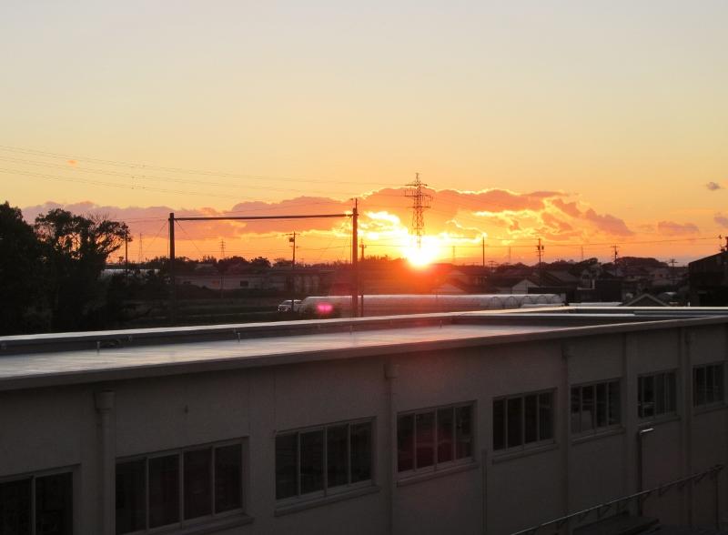 秋ですね 投稿日時 : 2019/12/03 主担 カテゴリ:今日の出来事 16時35分。生徒は全員下校しました。本館校舎3階の2年1組の窓からは、きれいな夕焼けが見えます。一日慌ただしく過ごした後の、ご褒美のような感じがします。みなさんは夕焼けを見ていますか。子どもの頃は、日が暮れるまで遊んでいて、毎日のように夕焼けを見ていたのに。今はほとんど見ることがありませんでした。あくせく働いているのみで、美しいものに全く気づかないまま毎日を終えていたように思います。たまには、ゆっくりと夕焼けを眺めてみませんか。インターネットなどの画像ではなく。 {{options.likeCount}} {{options.likeCount}}