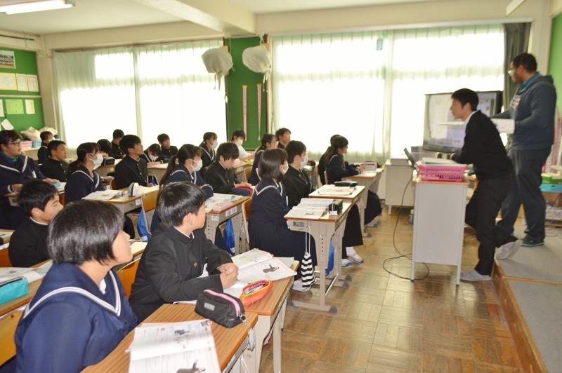 日々の様子 全ての記事 全ての記事 カテゴリ 今日の出来事 連絡事項 報告事項 ミーティング 本・雑誌 ニュース 映画・テレビ 音楽 スポーツ パソコン・インターネット ペット 総合学習 アニメ・コミック アーカイブ 2025年12月 (3) 2025年11月 (2) 2025年10月 (18) 2025年9月 (4) 2025年8月 (2) 2025年7月 (1) 2025年6月 (5) 2025年5月 (17) 2025年4月 (8) 2025年3月 (6) 2025年2月 (3) 2025年1月 (7) 2024年12月 (4) 2024年11月 (5) 2024年10月 (16) 2024年9月 (14) 2024年8月 (3) 2024年7月 (5) 2024年6月 (6) 2024年5月 (16) 2024年4月 (8) 2024年3月 (9) 2024年2月 (7) 2024年1月 (8) 2023年12月 (8) 2023年11月 (9) 2023年10月 (21) 2023年9月 (18) 2023年8月 (3) 2023年7月 (14) 2023年6月 (16) 2023年5月 (26) 2023年4月 (13) 2023年3月 (0) 2023年2月 (0) 2023年1月 (0) 2022年12月 (0) 2022年11月 (0) 2022年10月 (0) 2022年9月 (0) 2022年8月 (0) 2022年7月 (0) 2022年6月 (0) 2022年5月 (0) 2022年4月 (0) 2022年3月 (0) 2022年2月 (0) 2022年1月 (0) 2021年12月 (0) 2021年11月 (0) 2021年10月 (0) 2021年9月 (1) 2021年8月 (0) 2021年7月 (1) 2021年6月 (30) 2021年5月 (5) 2021年4月 (6) 2021年3月 (100) 2021年2月 (108) 2021年1月 (105) 2020年12月 (106) 2020年11月 (120) 2020年10月 (82) 2020年9月 (97) 2020年8月 (91) 2020年7月 (110) 2020年6月 (95) 2020年5月 (151) 2020年4月 (119) 2020年3月 (100) 2020年2月 (53) 2020年1月 (48) 2019年12月 (65) 2019年11月 (73) 2019年10月 (50) 2019年9月 (19) 2019年8月 (4) 2019年7月 (7) 2019年6月 (15) 2019年5月 (15) 2019年4月 (12) 2019年3月 (13) 2019年2月 (17) 2019年1月 (10) 2018年12月 (16) 2018年11月 (27) 2018年10月 (22) 2018年9月 (29) 2018年8月 (4) 2018年7月 (6) 2018年6月 (8) 2018年5月 (13) 2018年4月 (11) 2018年3月 (0) 2018年2月 (1) 2018年1月 (0) 2017年12月 (0) 2017年11月 (0) 2017年10月 (3) 10件 1件 5件 10件 20件 50件 100件 音楽の授業で 投稿日時 : 2019/12/04 主担 カテゴリ:今日の出来事 3年生の音楽の授業では、「旅立ちの日に」の合唱練習をしていました。この歌は、卒業式によく歌われる歌です。「あと3か月でこの子達も立派に卒業していくんだなあ」と感慨にふけってしまいました。あとで、音楽の先生に聞いたところ、違う曲を卒業式で歌うそうです。 {{options.likeCount}} {{options.likeCount}} 数学の授業で 投稿日時 : 2019/12/04 主担 カテゴリ:今日の出来事 1年生の数学の授業では、「図形の移動」を行っています。三角定規などを使って、平行移動を行っていました。グループの仲間と協力して、教え合う様子が見られました。 {{options.likeCount}} {{options.likeCount}} 体育の授業で 投稿日時 : 2019/12/04 主担 カテゴリ:今日の出来事 外は冷たい風が吹いています。日差しが当たると温かいです。1年生の体育の授業では、持久走を行っていました。今日は天気もよく、運動場で元気よく走っています。 {{options.likeCount}} {{options.likeCount}} 英語の授業で 投稿日時 : 2019/12/04 主担 カテゴリ:今日の出来事 3時間目、1年生の英語の授業では、道案内の授業を行っていました。来年はオリンピックイヤーです。「Excuse me. I'm looking for ○○.」なんて質問されるかもしれませんね。 {{options.likeCount}} {{options.likeCount}} 秋ですね 投稿日時 : 2019/12/03 主担 カテゴリ:今日の出来事 16時35分。生徒は全員下校しました。本館校舎3階の2年1組の窓からは、きれいな夕焼けが見えます。一日慌ただしく過ごした後の、ご褒美のような感じがします。みなさんは夕焼けを見ていますか。子どもの頃は、日が暮れるまで遊んでいて、毎日のように夕焼けを見ていたのに。今はほとんど見ることがありませんでした。あくせく働いているのみで、美しいものに全く気づかないまま毎日を終えていたように思います。たまには、ゆっくりと夕焼けを眺めてみませんか。インターネットなどの画像ではなく。 {{options.likeCount}} {{options.likeCount}} FS集会を行いました! 投稿日時 : 2019/12/03 主担 カテゴリ:今日の出来事 今日の7時間目、FS集会を行いました。会の初めに、表彰を行いました。陸上競技大会、競書大会、実践体験文とポスターの表彰を行いました。生徒会からは、10分間配膳について、美化委員会からは「心を磨く掃除」の啓発に向けての発表がありました。そして、今回から2年生の指揮と伴奏によって校歌を歌いました。最後に、生徒指導主事より、校則改正の話があり、来年度より女子のスラックスの導入。そして、明日から白色のソックスの他に、黒色と紺色の追加の連絡がありました。これからも前向きに校則について考えていきたいと考えています。ブラックな校則があったら相談してください。 {{options.likeCount}} {{options.likeCount}} 体育の時間に 投稿日時 : 2019/12/02 主担 カテゴリ:連絡事項 今日は朝から大雨が降りました。廊下も結露で水たまりのようでした。5時間目、2年生は体育館で持久走の練習が始まりました。体育館の端から端まで、シャトルランを行っていました。 {{options.likeCount}} {{options.likeCount}} 学年集会を行いました 投稿日時 : 2019/12/02 主担 カテゴリ:今日の出来事 1時間目、2年生は武道館で学年集会を行いました。「陰」からイメージするマイナスの言葉だけでなく、「陰」に「お」と「様」を足した「お陰様」
