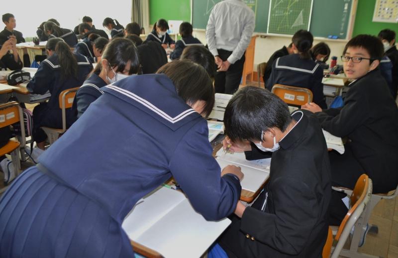 数学の授業で 投稿日時 : 2019/12/04 主担 カテゴリ:今日の出来事 1年生の数学の授業では、「図形の移動」を行っています。三角定規などを使って、平行移動を行っていました。グループの仲間と協力して、教え合う様子が見られました。 {{options.likeCount}} {{options.likeCount}}