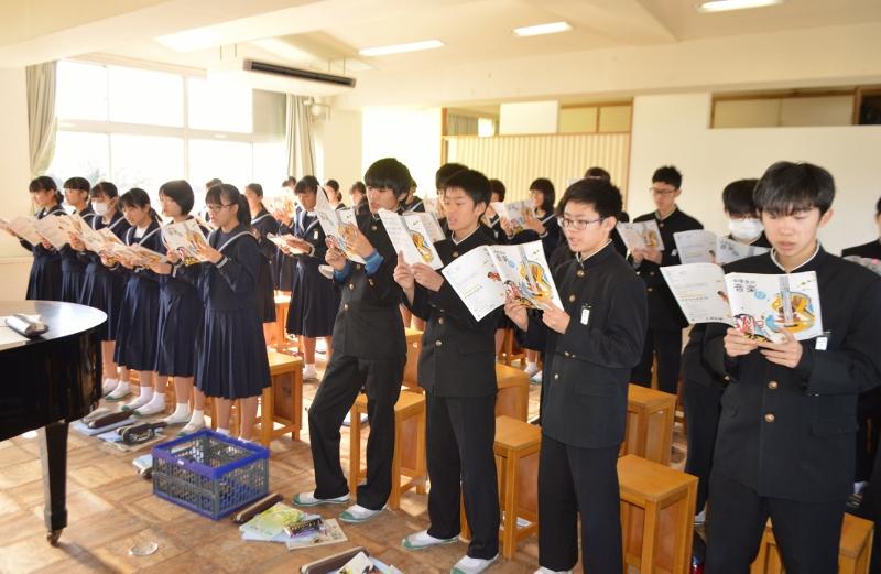 音楽の授業で 投稿日時 : 2019/12/04 主担 カテゴリ:今日の出来事 3年生の音楽の授業では、「旅立ちの日に」の合唱練習をしていました。この歌は、卒業式によく歌われる歌です。「あと3か月でこの子達も立派に卒業していくんだなあ」と感慨にふけってしまいました。あとで、音楽の先生に聞いたところ、違う曲を卒業式で歌うそうです。 {{options.likeCount}} {{options.likeCount}}