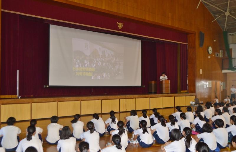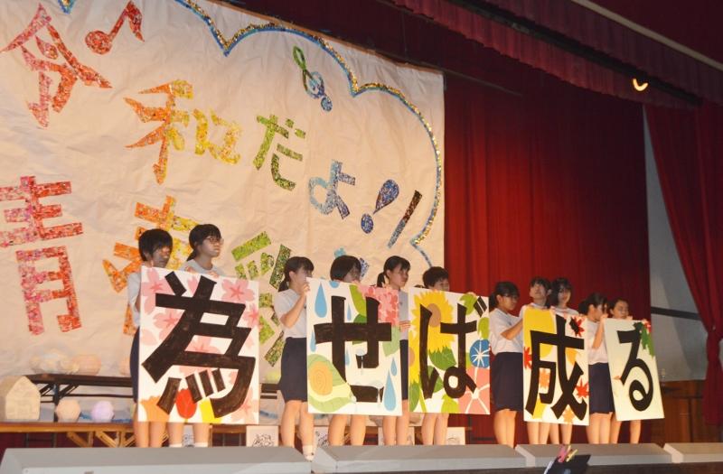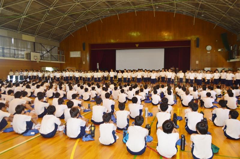 FS集会 投稿日時 : 2019/10/28 主担 カテゴリ:今日の出来事 7時間目、FS集会を行いました。初めに、男子バレーボール部東三河中学生新人大会優勝、女子バレーボール部東三河中学生新人大会2位、駅伝部東三河中学校総合体育大会3位、自然史博物館自由研究展佳作、豊橋市中学校英語スピーチコンテスト最優秀賞の表彰披露を行いました。その後、級長、委員長の認証式、生徒会からの月目標の報告、給食委員会からのクイズと代議員会からの活動報告を行いました。そして最後に、校歌を歌いました。 {{options.likeCount}} {{options.likeCount}}