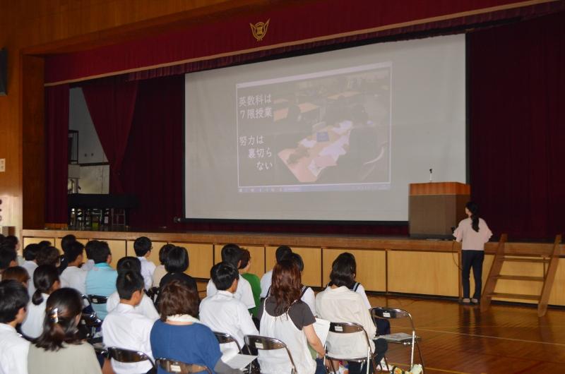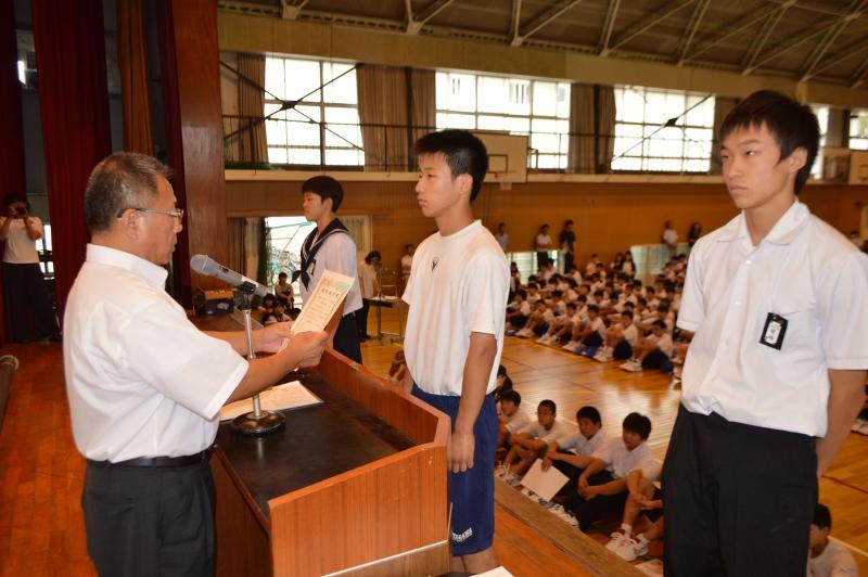 後期始業式 投稿日時 : 2019/10/15 主担 カテゴリ:今日の出来事 後期が始まりました。始業式では、駅伝部の表彰披露を始め、生徒代表による後期の抱負の発表、校長先生のパワーポイントを用いた式辞、校歌斉唱、英語スピーチコンテスト出場者の発表、生徒会認証式と盛りだくさんの内容でした。 {{options.likeCount}} {{options.likeCount}}