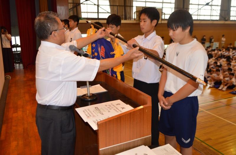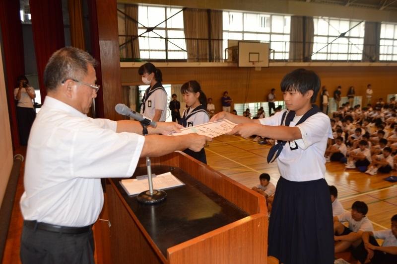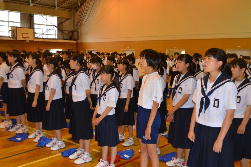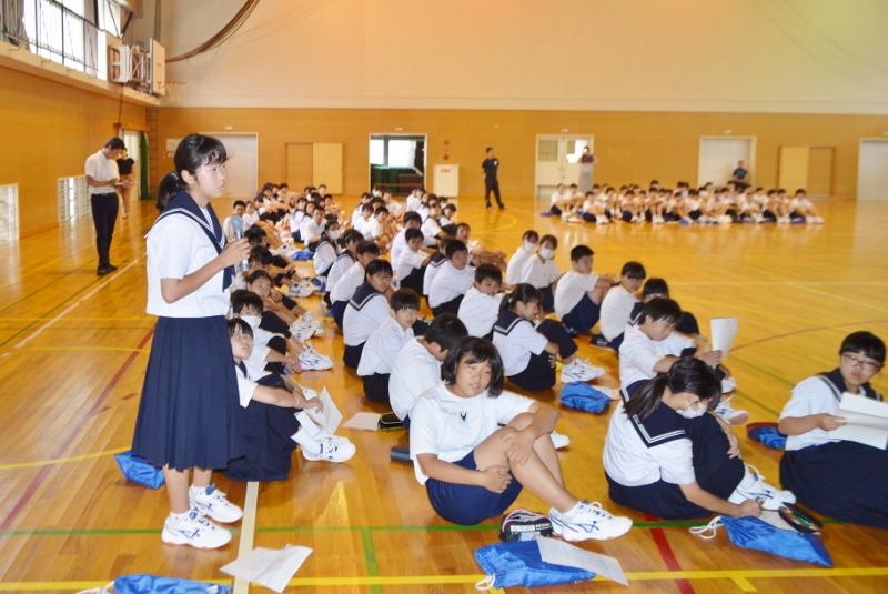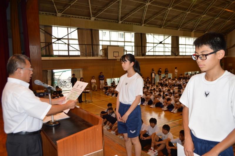 前期修了式 投稿日時 : 2019/10/11 主担 カテゴリ:今日の出来事 11日、2学期制を行っている豊橋市では、本日前期の終業式をしました。柔道部の表彰、校長先生のお話、駅伝部の激励会をしました。駅伝部の大会は台風19号の影響で、13日に順延となっています。 {{options.likeCount}} {{options.likeCount}}