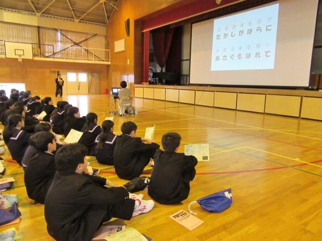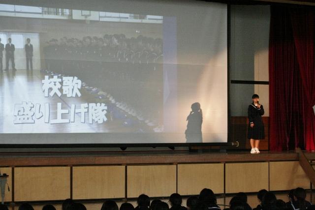 学校が再開しました! 投稿日時 : 2018/09/03 主担 カテゴリ:今日の出来事 9月3日、夏休み明け初めての全校集会を行いました。会の初めに女子バスケットボール部、ハンドボール部、陸上競技部、柔道部の表彰披露が行われました。校長先生のお話の後、全校で久しぶりの校歌を歌いました。 {{options.likeCount}} {{options.likeCount}}
