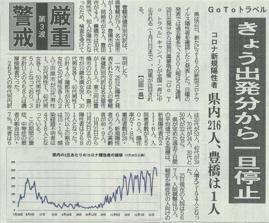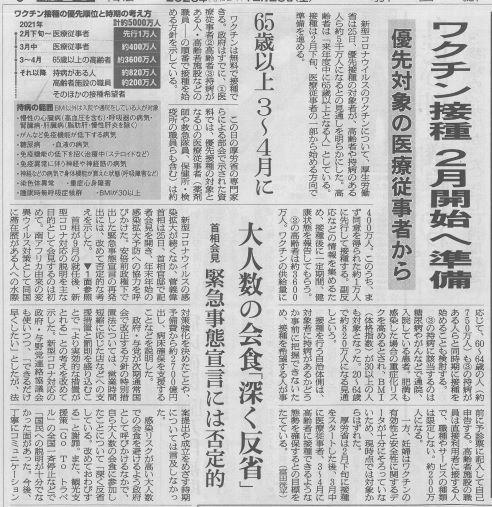 明日は成人の日ですが、豊橋市では本日成人式です。コロナ禍の中、無事に行えることを願っています。そして、成人を迎えられる方に期待したいのですが、今人類が直面している感染症の問題だけではなく、地球の環境問題や人種差別の問題など様々な問題があります。いろいろな問題についてどうしたらよいのかを考え続けてほしいと思います。一人の力は小さいかもしれませんが、一人が動き出すことで変化が生まれたり、人が集まることで大きな力となったりします。今自分のことで精一杯、自分のこともわからないと考えている人もいるかと思います。しかし、一人前になってから考えようとしても一生余裕なんてありません。目の前のことで日々過ぎ去っていきます。成人となった喜びを忘れず、一緒に過ごした仲間がいたことを忘れず、これからを大切に過ごしてください。