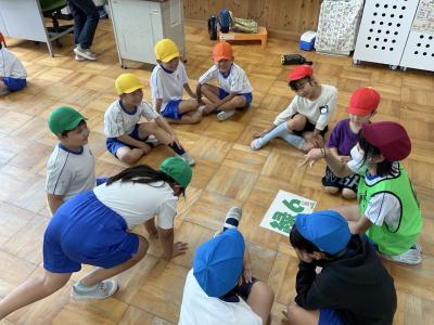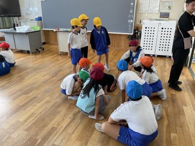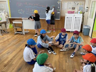 また、5時間目には伝統のたて割り活動である「実りの集会」が行われました。実りの集会は、4年生の企画です。4年生がリーダーとなって、各会場でゲームなどを行います。今日は、「防災クイズ」を中心にしたゲームで大いにもりあがっていました。4年生のみなさん、ありがとうございました。