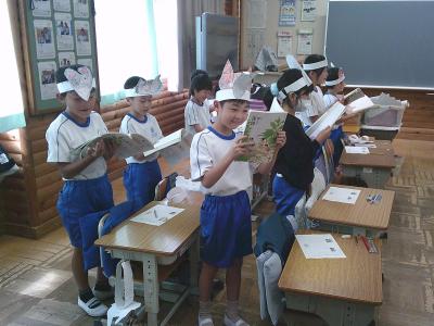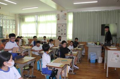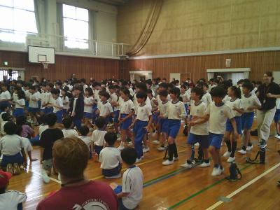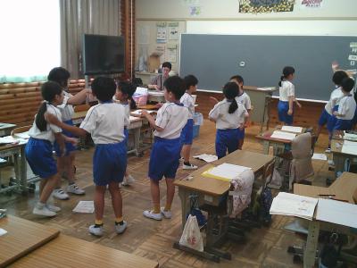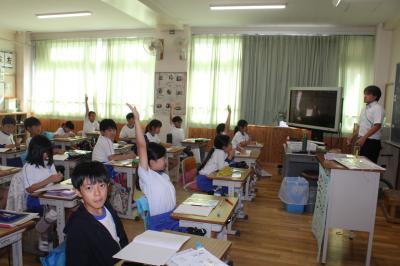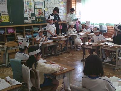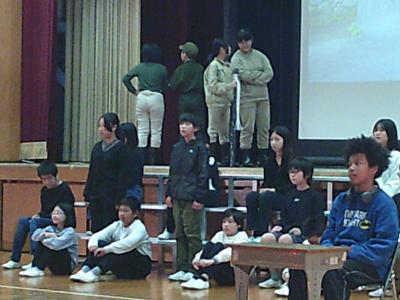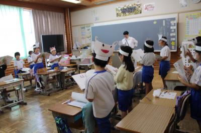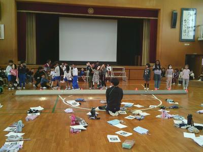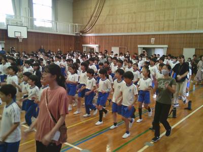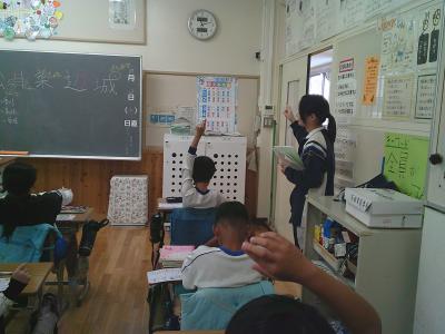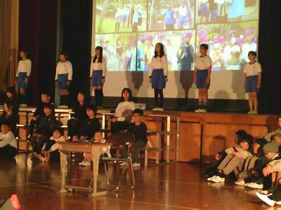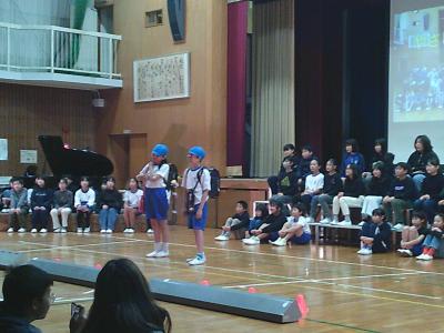また、5時間目には伝統のたて割り活動である「実りの集会」が行われました。実りの集会は、4年生の企画です。4年生がリーダーとなって、各会場でゲームなどを行います。今日は、「防災クイズ」を中心にしたゲームで大いにもりあがっていました。4年生のみなさん、ありがとうございました。