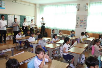 将来、教員をめざす生徒さんたちです。みなさん、やる気と希望に満ち溢れた表情で、授業を行う先生方や、子どもたちとの交流を行っていました。