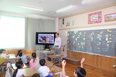 たて割り遊びでも、言葉は通じませんが、子どもたちはすぐに打ち解け、楽しいひと時を過ごすことができました。