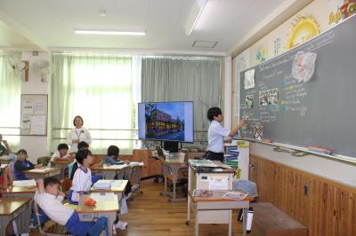 7月15日(火)午前中、中国南通市の2つの小学校との交流会が開かれました。