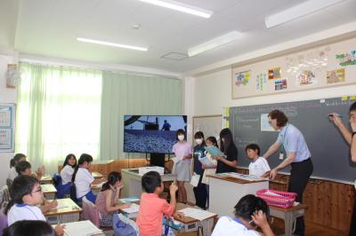 本日午前中、中国の南通市の小学校との交流会が開催されました。This morning, we held an exchange event with an elementary school from Nantong City, China.
