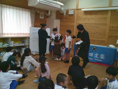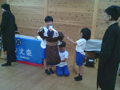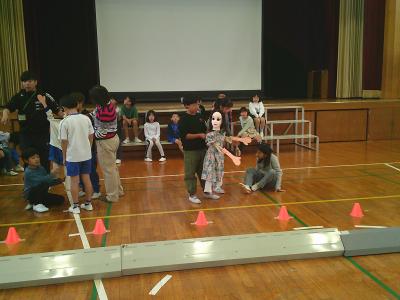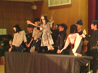 郷土の文化を学習する3年生は、毎年「飽海人形浄瑠璃」を一部に取り入れた発表を行ってきましたが、今年は、人形の数を一気に10体に増やし、国語「もちもちの木」を題材にした人形浄瑠璃劇を行うことになりました。人形の操作は難しいですが、「吉田文楽保存会」の方を講師にお呼びして手ほどきを受けるなど子どもたちは多くのことを学んでいます。