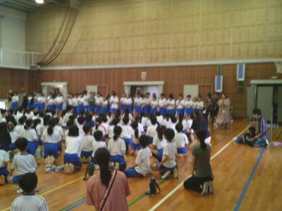 南通市の2つの小学校の児童の発表は実に堂々としており、八町小の子どもたちにもよい影響を与えてくれました。披露してくれた5つの演目も、ダンス、演奏、合唱と、特にダンスは日本の小学校ではあまり見られない、大人びていて、大変堂々としたすばらしいものでした。