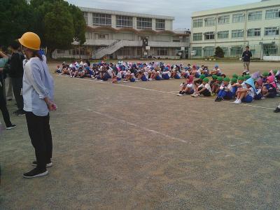 その後は放送の指示で、教室にいた児童も教職員の指示に従いながら、運動場に避難し、全員の無事を人員点呼により確認をしました。避難指示から、確認完了まで5分以内でした。