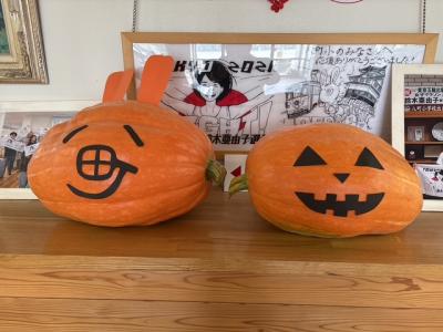 地域の方に大カボチャをいただきました。そのカボチャをハロウィンにあわせて装飾しました。