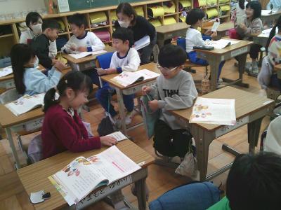 ボランティアの方の読み聞かせ「おはなしの部屋」同様、おはなしレストランは、教師の読み聞かせです。