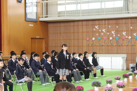 1年生、6年生の代表児童による3学期の抱負と校歌斉唱が中心です。