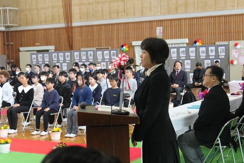 終業式では、2名の児童の話がありました。「一人一人を大切にできるクラス、やさしいクラスをつくるよう3学期にがんばります」や「勉強をがんばりたい」など、2学期のふりかえりと3学期の目標などの素敵なお話でした。