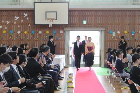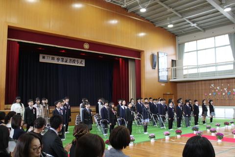 最後に全校で校歌を歌いました。終業式のあとは、冬休みの生活について係の先生からのお話がありました。