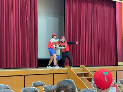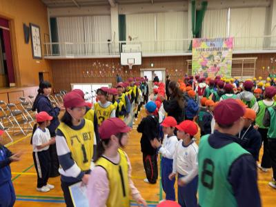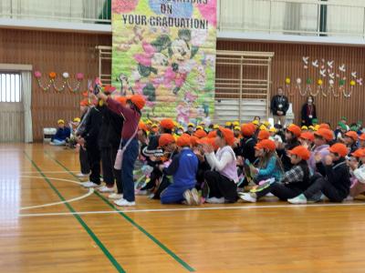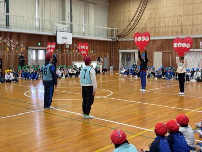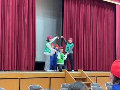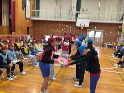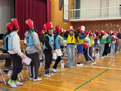 また、5時間目には伝統のたて割り活動である「実りの集会」が行われました。実りの集会は、4年生の企画です。4年生がリーダーとなって、各会場でゲームなどを行います。今日は、「防災クイズ」を中心にしたゲームで大いにもりあがっていました。4年生のみなさん、ありがとうございました。