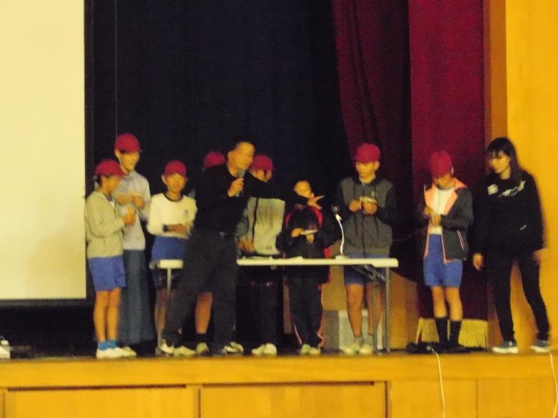 保健委員会の劇や実際に体を動かして体感トレーニングを行いました。